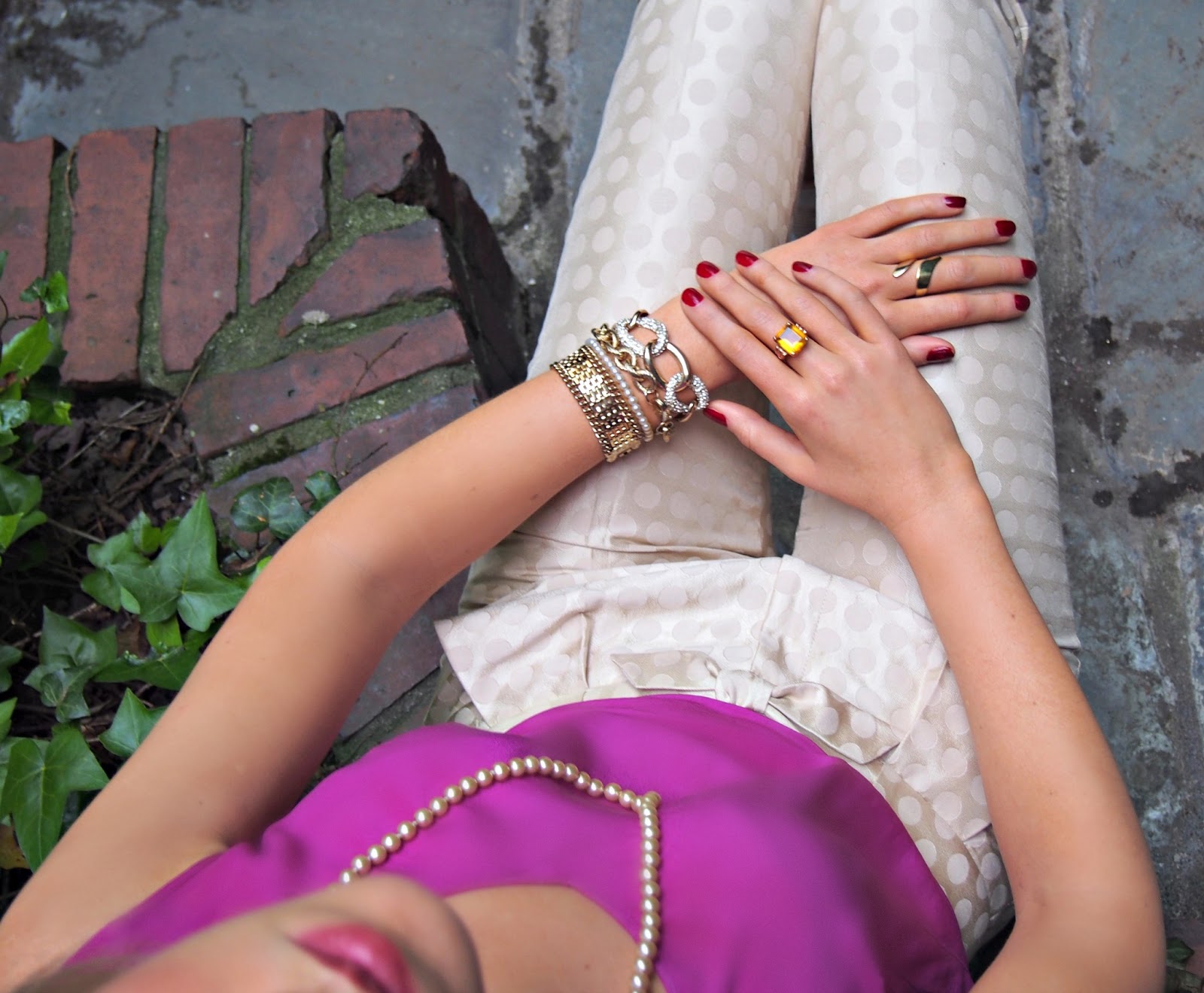 These pants are adorable! I love how you paired them with the bright, lose fitted top and bracelets!